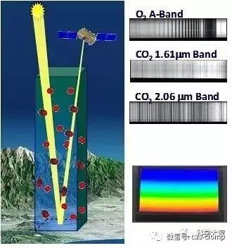 碳卫星实现大气温室气体探测是基于大气吸收池原理,CO2、O2等气体在近红外至短波红外波段有较多的气体吸收,形成特征大气吸收光谱,对吸收光谱的强弱进行严格定量测量,综合气压、温度等辅助信息并排除大气悬浮微粒等干扰因素,应用反演算法即可计算出卫星在观测路径上CO2的柱浓度。