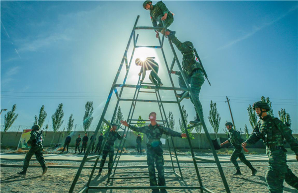 武警特战队员攀越A字梯