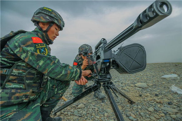 武警特战队员进行重火力射击课目训练